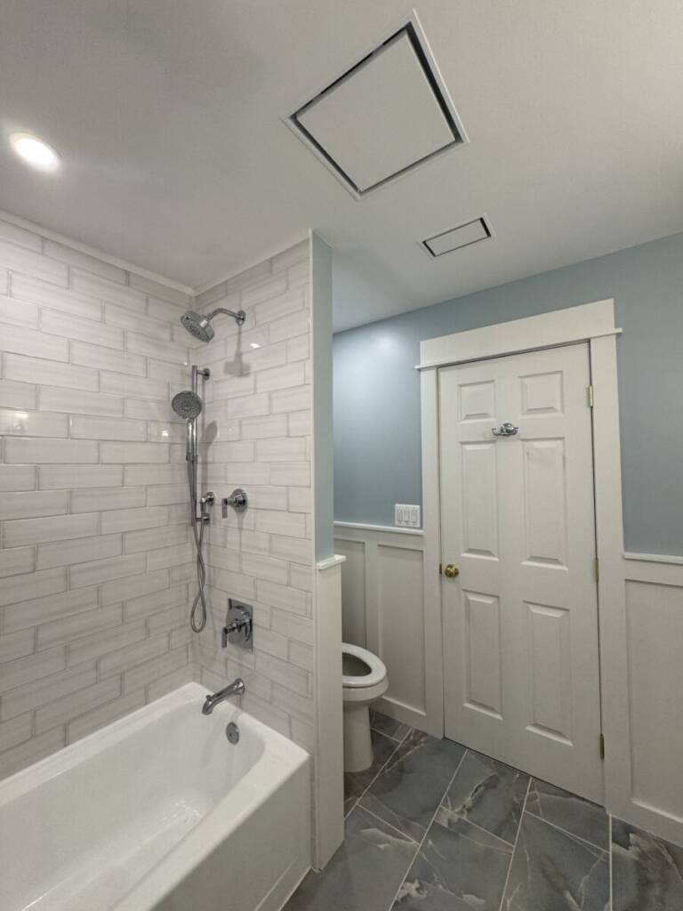 During this initial consultation, our licensed contractor examines your current plumbing configuration, electrical capacity, structural considerations, and ventilation requirements while discussing your style preferences, functional needs, and budget parameters. We approach each bathroom as a unique puzzle, requiring custom solutions. Whether you’re working with a compact powder room that needs maximum functionality, a master suite that requires luxury amenities, or a family bathroom that must balance durability with style, we tailor our solutions to meet your specific needs.