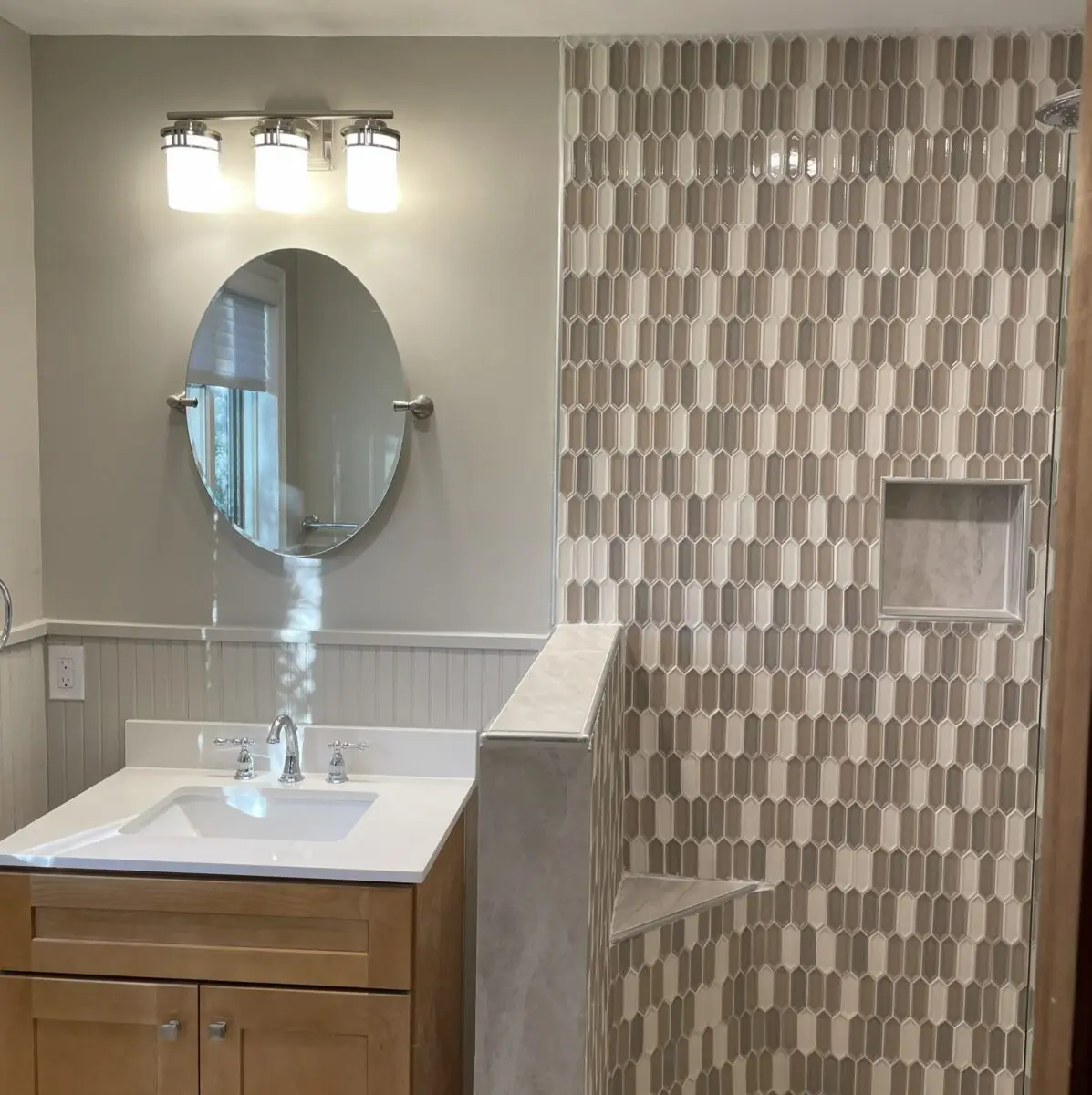 This 2022 primary bathroom remodel in McLean was a full-scale rework designed to transform a dated, compartmentalized space into a cohesive, spa-like retreat. The goal was to modernize the bathroom while preserving select existing elements—most notably the original wood paneling—to maintain warmth and character throughout the space.