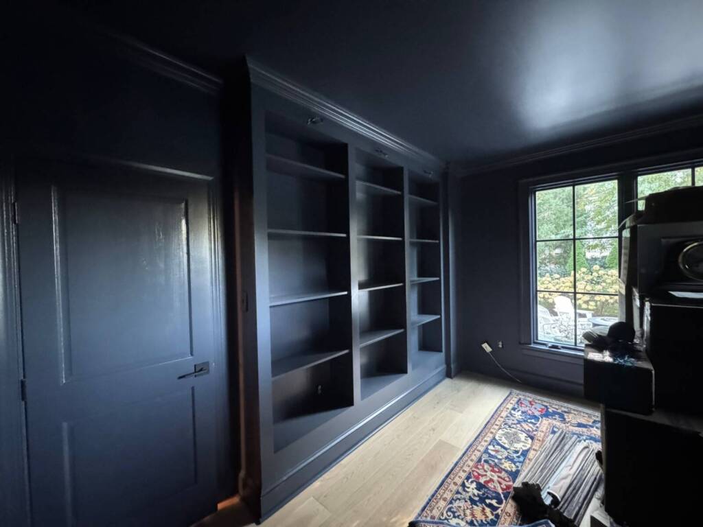 Color drenching is a professional painting technique where walls, trim, doors, built-ins, and ceilings are painted in one single color or closely related shades. By eliminating contrast, the room feels seamless, immersive, and architecturally intentional.