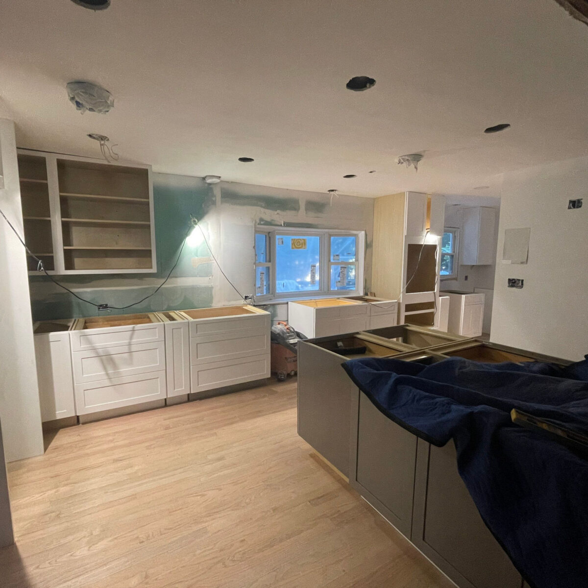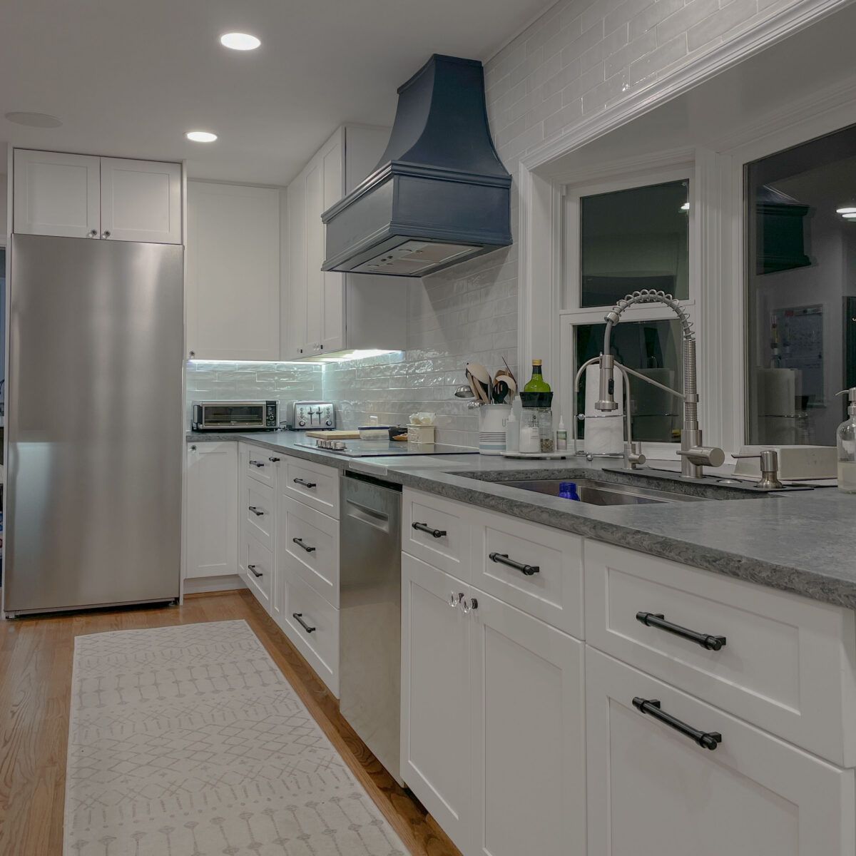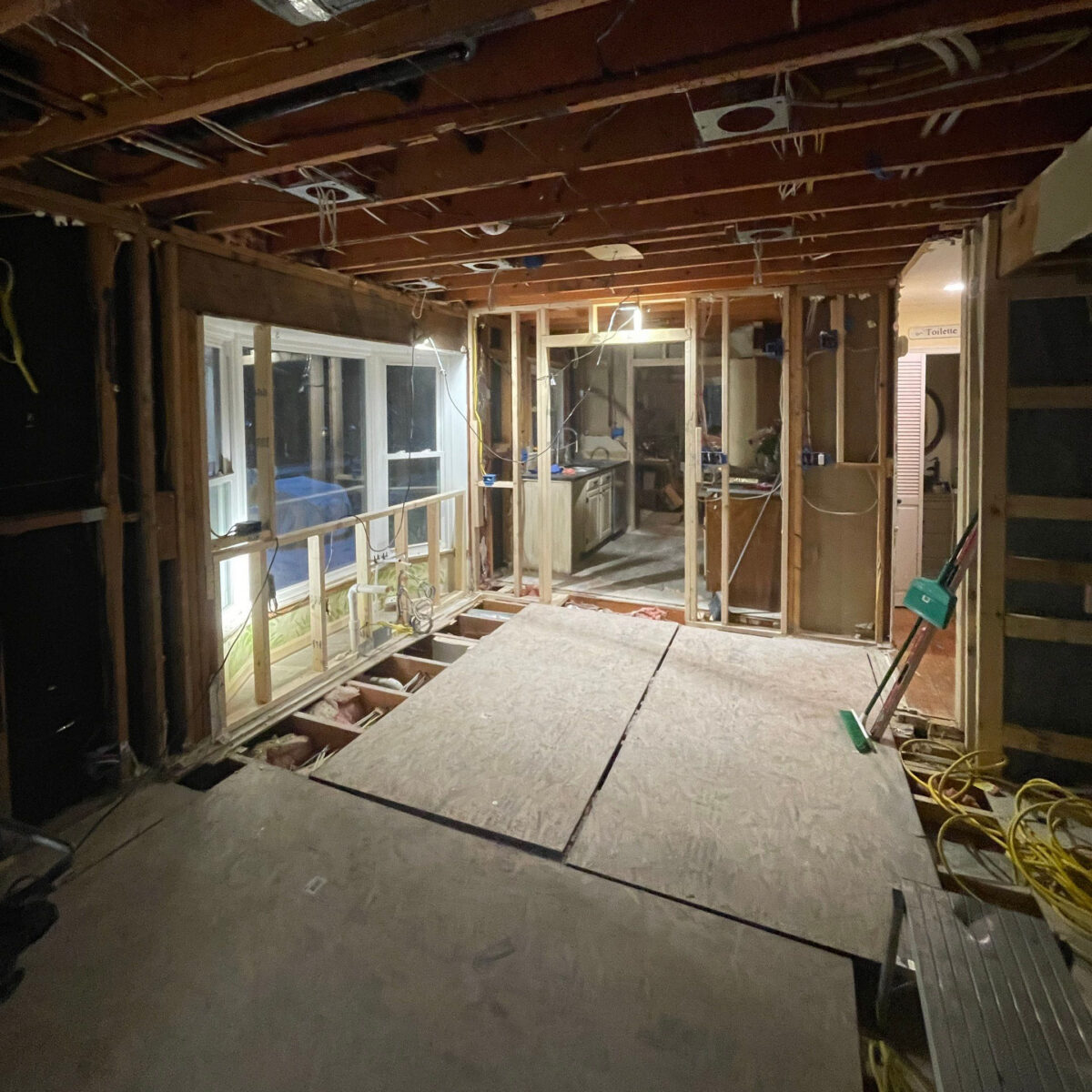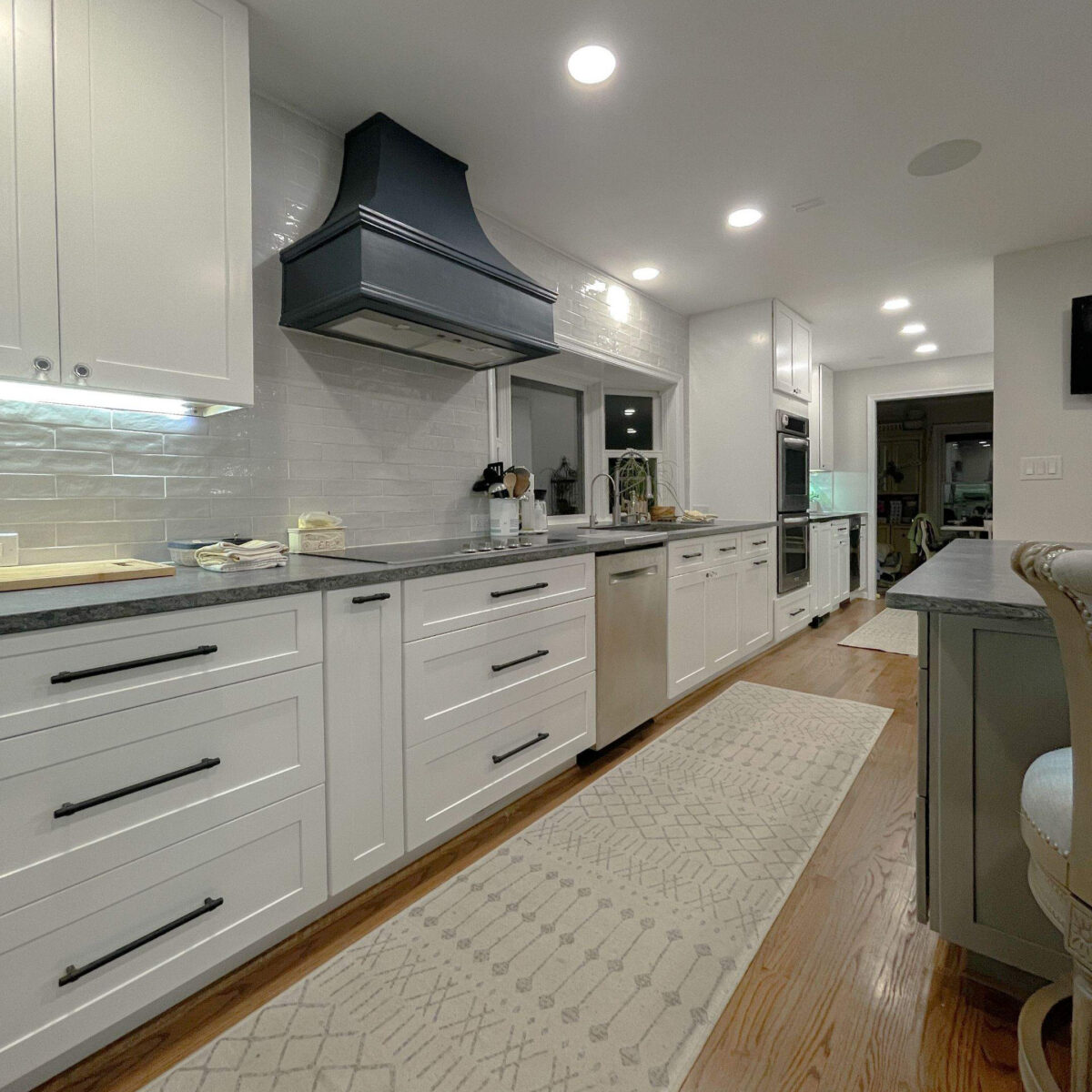 To accomplish this, the project required removing a major structural wall running through the middle of the house, dramatically expanding the kitchen footprint to approximately 350 square feet. The renovation also included updating the home’s mechanical systems, improving insulation, upgrading lighting, and refinishing the surrounding living areas to create a cohesive first-floor transformation.