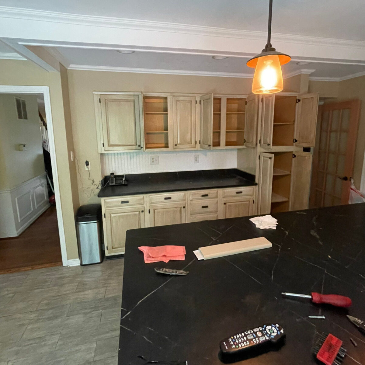 This project began with a small, enclosed 70 square foot kitchen that limited both functionality and flow within the home. The homeowners wanted a significantly larger kitchen that would allow for better circulation, increased storage, and a layout that connected more naturally with the rest of the first floor.